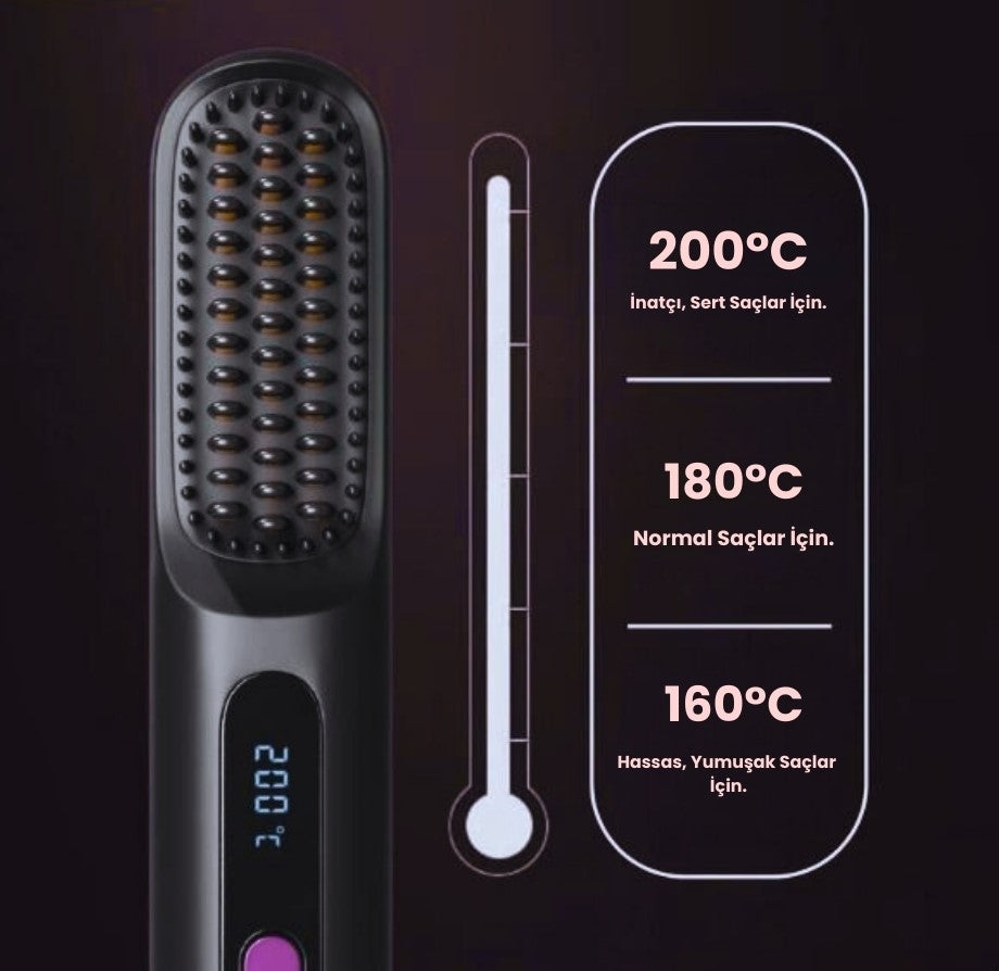 3 Farklı ısı seçeneği ile her tip saça uygun üretilen bu tarak sayesinde endişelenmeden kendi tarzını yansıtabilirsin!